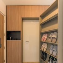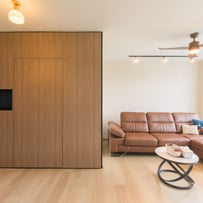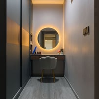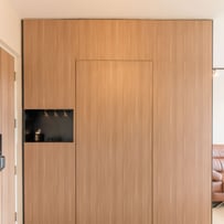 In the living room, we embraced the airy, minimalist essence of Scandinavian style with soft neutrals, natural materials, and an abundance of light. This inviting space is perfect for cozy gatherings and moments of tranquility.
