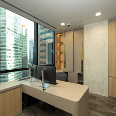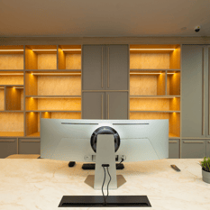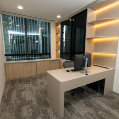 From bespoke wood finishes to curated designer pieces, every element is thoughtfully selected to reflect both functionality and finesse. This isn’t just an office — it’s a statement of calm, clarity, and quiet luxury.